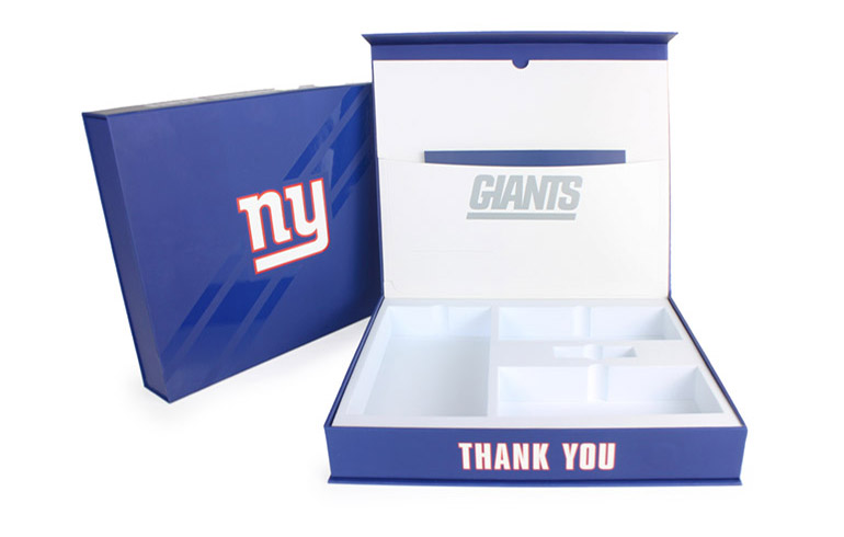 Magnetic packaging system built with a variety of marketing opportunities and custom-sized product pockets. @NYGiants